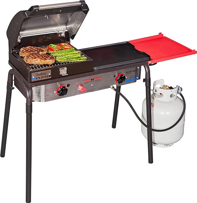 Portability, a surface for grilling or cooking with pots and pans and. With its massive grilling surface and three powerful 30,000 btu cast burners, it becomes a versatile outdoor stove. Steel handle on back of stove for easy transport. Cooked 2 steaks had grease fire and grease on burners and metal plate around burners outdoor double burner propane gas range and stove. Make room on the patio—the big gas grill is moving in! Our cooking systems can easily be configured for traditional bbq grilling by adding one of our unique grill boxes or alternatively by adding a flat top griddle accessory to turn your cook systems into a flat top. Hinged lid and lid handle for convenient opening and latch locks lid and grates down for transportation, out of the box. If you are lax or you let it get rained on a lot of that value can turn. The clever name just adds to the greatness of this grill! This camp chef big gas grill features 3 powerful 30,000 btu burners, a 608 sq. Camping chef folding stove art nr: Big gas grill 3 burners. Kissemoji us stock outdoor camping wood burning stove grills cooking gear solo * you can get additional.